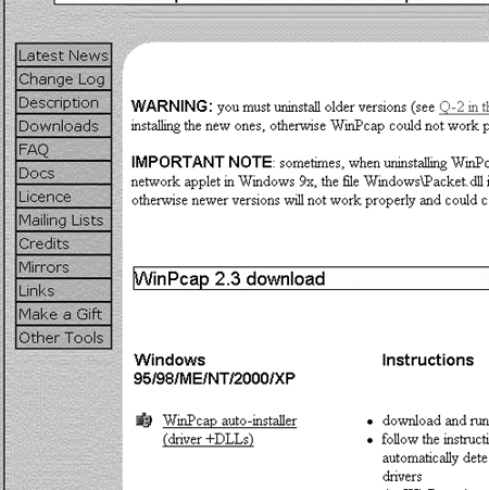 ※ Since it seems that it will be connected if it goes via Following URL when www.winpcap.polito.it/ is not connected, please try and see here. http://netgroup-serv.polito.it/winpcap/