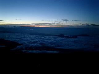4時を過ぎ、周りが明るくなり始め、ご来光が近いことを告げる。