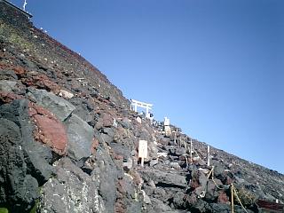 八合目で吉田口と分かれ、七合目までは、どこの山でもある下り坂なのだが、