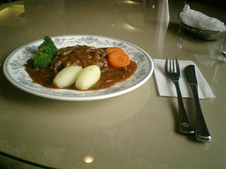 写真:頼んだビーフシチュー。900円(通常は1300円)お肉の量と、柔らかさにびっくり。