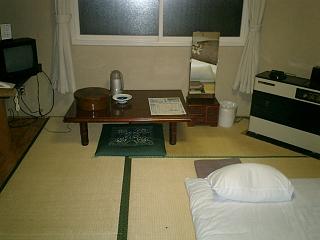 写真:1日目に泊まった湯の川温泉 ゆったりさん お風呂屋さんの2Fが部屋って感じ