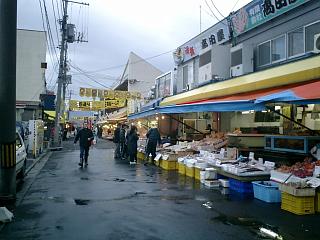 ホテルを6:30に出たら、二条市場に6:45に着いてしまい、開店の7:00までは、
