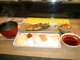 7時になって、早速注文!どれも新鮮なおすし4カンにホッケの開き、小鉢まで付いてた。