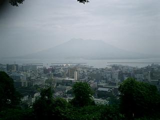 写真:城山展望台から見た桜島。悪天候のためにくっきりとは見えなかった。