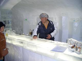 写真:コタン村のバー。建物もテーブルも氷で出来ており、あまり味わえない雰囲気。