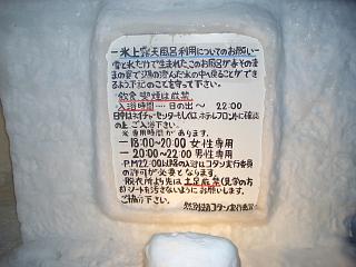 写真:露天風呂の時間割。お好みの時間にどうぞ。
