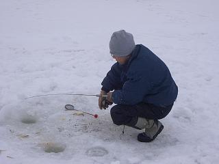 湖面は凍り、その上に雪が積もって一面、雪原のようだった。