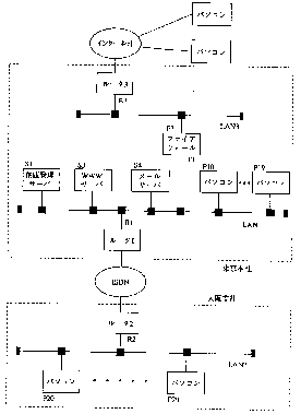 ISPには、 ルータ0を経由して128kビット/秒の専用線を介して接続する。