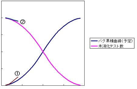 時間を進めると、テストを消化し、発見したバグが増えていきます。