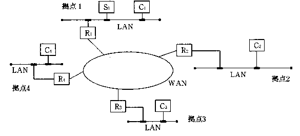 図1はそのシステム概念図で、Cn(nは拠点を表す数字)はクライアント、Rnはルータ、S1