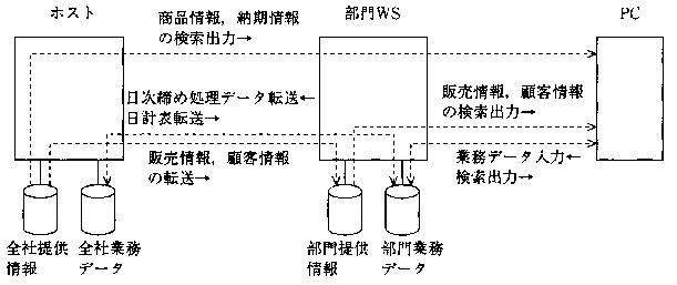 ホスト上の業務データを部門のWSに移行し、WS、PC利用の分散システムに移行する