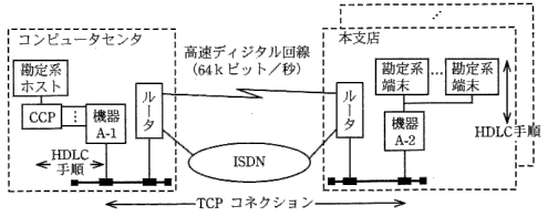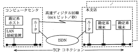 レータがTCPコネクションの【 b 】になり、勘定系端末は、LANに直接接続されている。