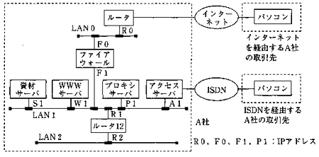 | LAN2→LAN1 | @ あて先IPアドレスがS1又はW1のパケットは通過させる。 A 上記以外のパケットは破棄する。 |