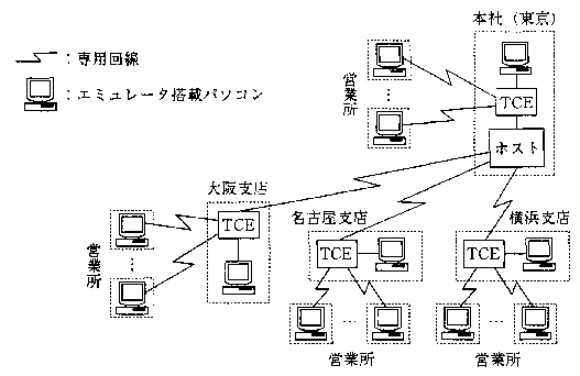 は端末制御装置(TCE)を経由しHDLC手順で接続していた。端末はエミュレータを搭