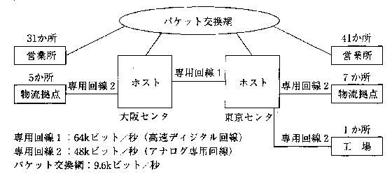 クは、東京センタと大阪センタ間に高速ディジタル回線、物流拠点、工場及びセンタ間に