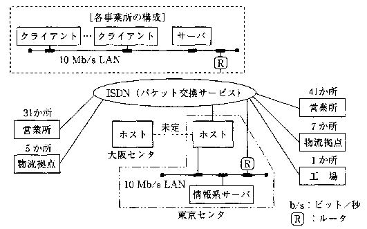 ぶ。センタのホスト間の回線は未定だが、センタと事業所間はISDN基本インタフェー
