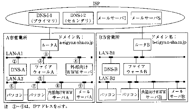 ットサービスプロバイダ(以下、ISPという)に接続し、営業所間での電子メール利用、取