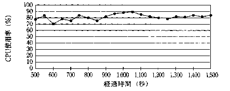 現行方式のCPU使用率の変化を図3に示す。図3から、CPU使用率が80%を超える現