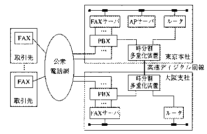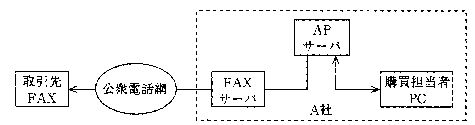 タという)をFAXサーバに転送する。FAXサーバは、公衆電話網を経由して取引先の