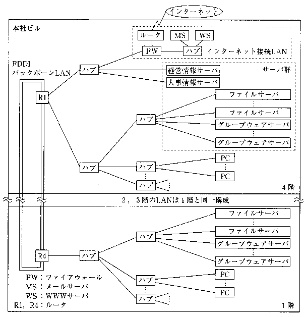 できるシステムが稼働した。同じ時期に4階のフロアLANを拡張して、図1に示すインタ