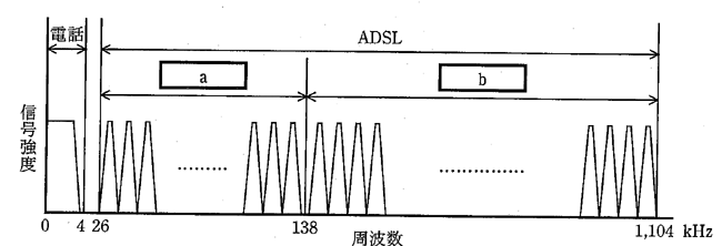 送受信を行います。図2に、ADSLの方式の一つであるDMT