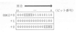 した部分の最上位のビット番号をGR0に設定して主プログラムに戻る。一致した