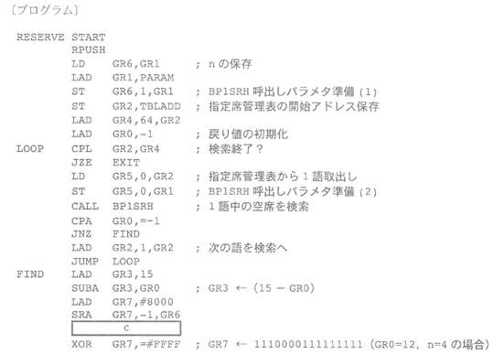 部分がない場合は,-1をGR0に設定して主プログラムに戻る。次の例では,GR0
