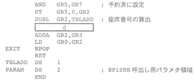 保された一番若い番号の座席番号をGR0に設定し,主プログラムに戻る。確保で