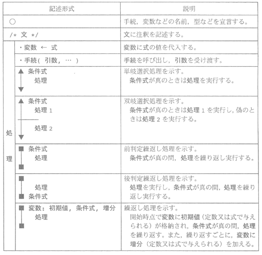 擬似言語を使用した問題では,各問題文中に注記がない限り,次の記述形式が適用さ