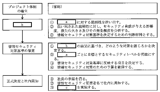 図3中の"プロジェクト体制の確立"では、情報セキュリティ対策基準策定の