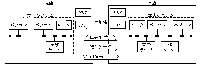 本店と各支店間は、音声通信とデータ通信を時分割多重装置(以下、TDM とい
